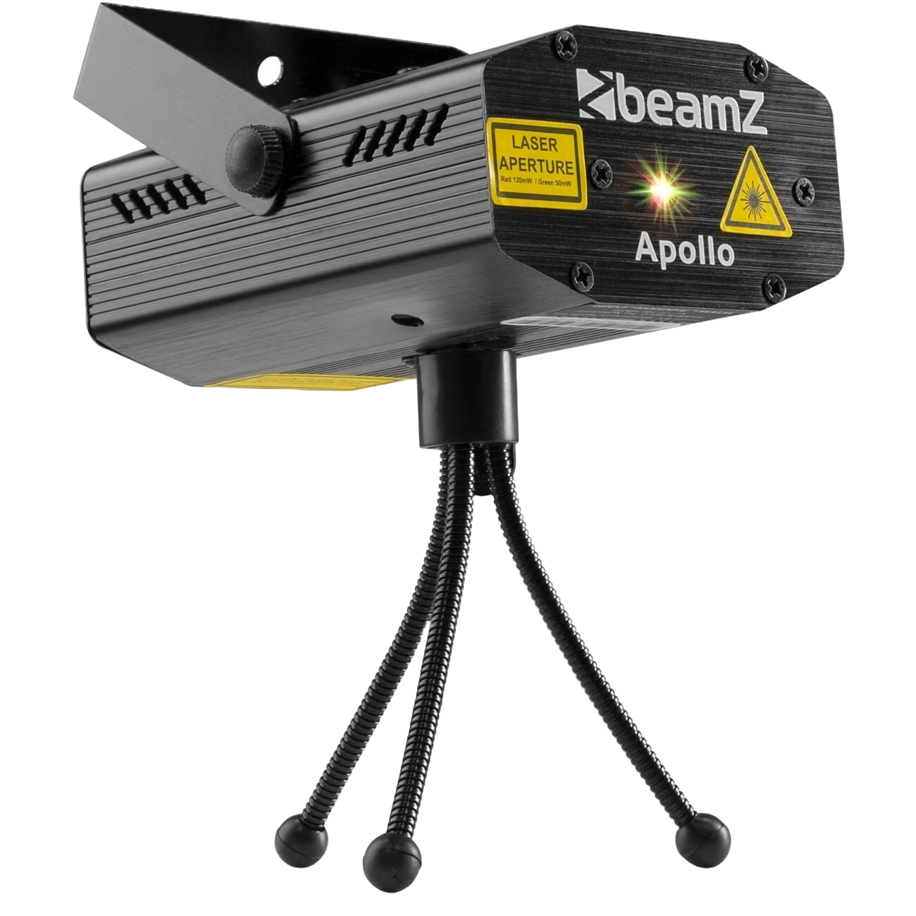 De laser kan eenvoudig op een statief worden bevestigd voor vloerenprojecties. Daarnaast is hij perfect geschikt om op de grond of een tafel te plaatsen voor indrukwekkende muurprojecties.