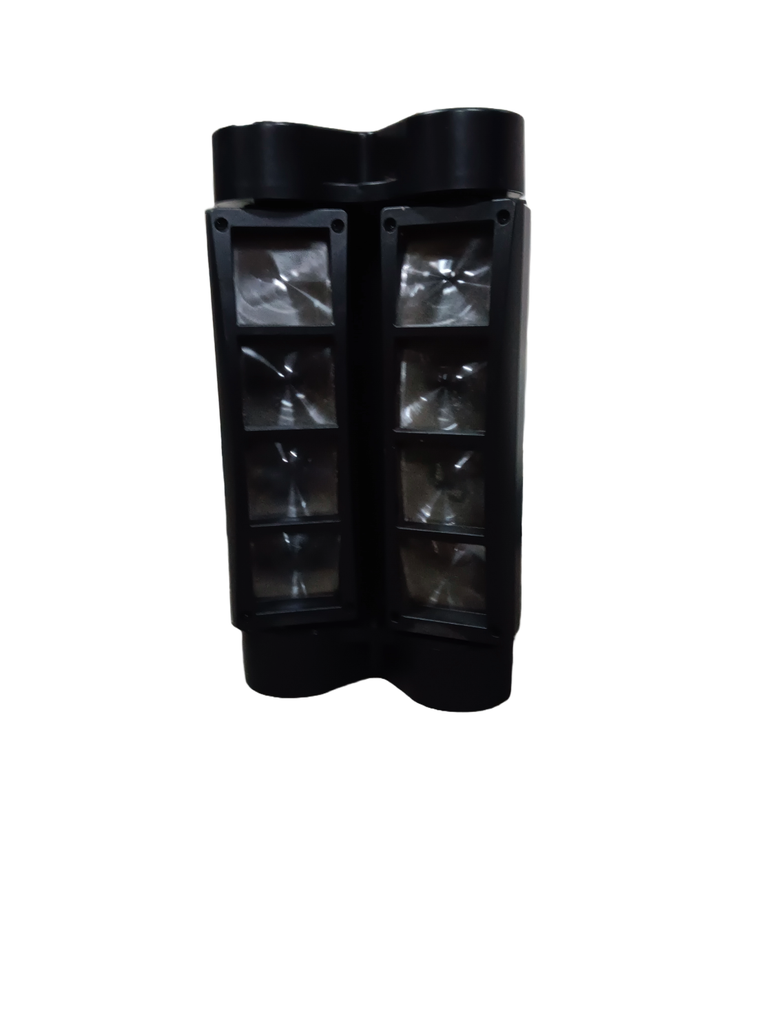 Deze unit beschikt over 8 LED's van 3W die onafhankelijk van elkaar krachtige lichtbundels genereren. De LED's zijn verdeeld over twee afzonderlijke stroken, die elk zowel onafhankelijk kunnen werken als roteren. De LED-kleuren omvatten rood, groen, blauw en wit, wat veelzijdigheid en levendige effecten garandeert.